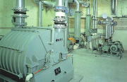 1・一次、二次処理設備高度処理設備の余剰汚泥は濃縮槽にて濃縮された後、汚泥脱水機(遠心分離機)にて脱水され、乾燥焼却設備へ送られます。脱水分離液は第1曝気槽へ送ります。