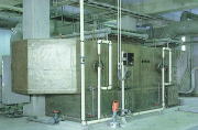 2・各室内や曝気槽などの臭気をファンにより吸引し、酸・アルカリ洗浄等、活性炭吸着塔で完全に脱臭し、臭突から排出します。